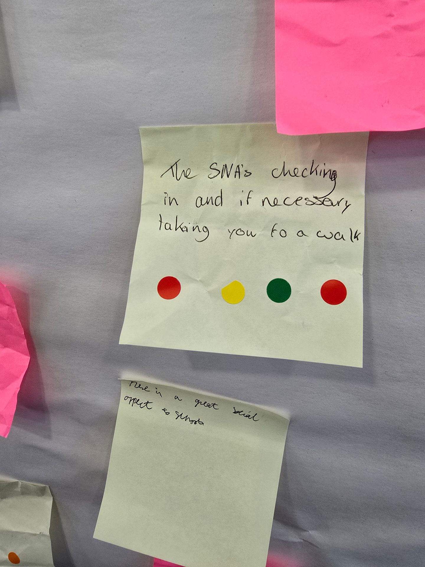 I was at one of the National Conversation on Education groups and one ofthe activities was to write things that are going really well in schools today. All the ideas were posted on a board and then the children went around with a sticky dot each and put them on