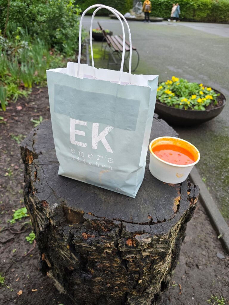 I had missed eating lunch as I was running late for my second meeting of the day so I went in and ordered some soup. After, I walked into the Dublin drizzle and over to Stephen’s Green where I stopped by a tree trunk, and thought of Emer as I ate my lunch. I thought about how she would have been dying to hear about my meeting because it was something we were both heavily invested in. Even though I was only there for a few minutes, it changed my pace for the rest of my day, and the walk back to the train station.